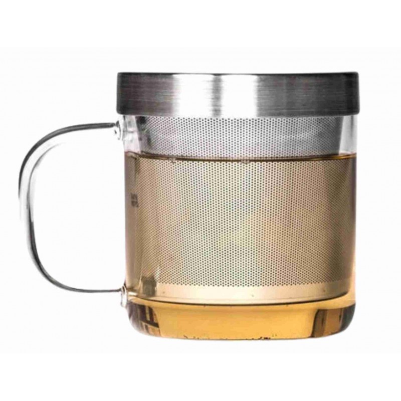 Skleněný hrnek s nerezovým sítkem a pokličkou